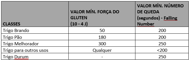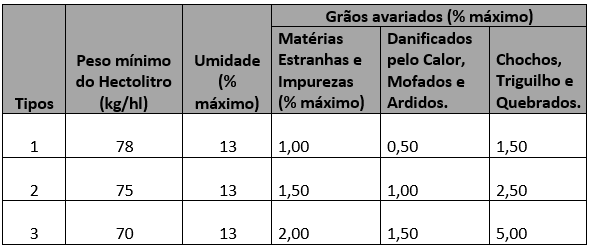 Nesse sentido, alguns parâmetros foram definidos de acordo com a qualidade do grão: