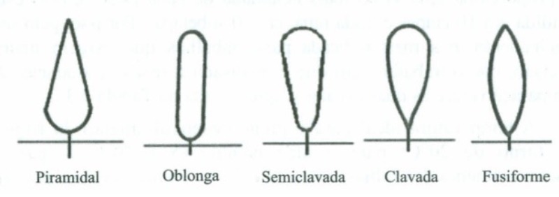 Podem ocorrer cinco tipos de espigas: fusiforme, piramidal, clavada, semiclavada e oblonga